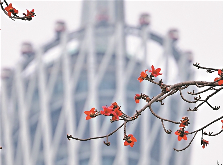 当春风掠过珠江,广州便被花唤醒。越秀山下,木棉率先点燃枝头,红若火焰;人民北路上,紫荆舒展成云,粉色沿街铺开;洲头咀公园环岛路旁,黄花风铃木一树树盛放,仿佛把整条道路点亮成金色。广州的春天,总是从一朵花开始,渐渐铺展成整座城市的颜色。