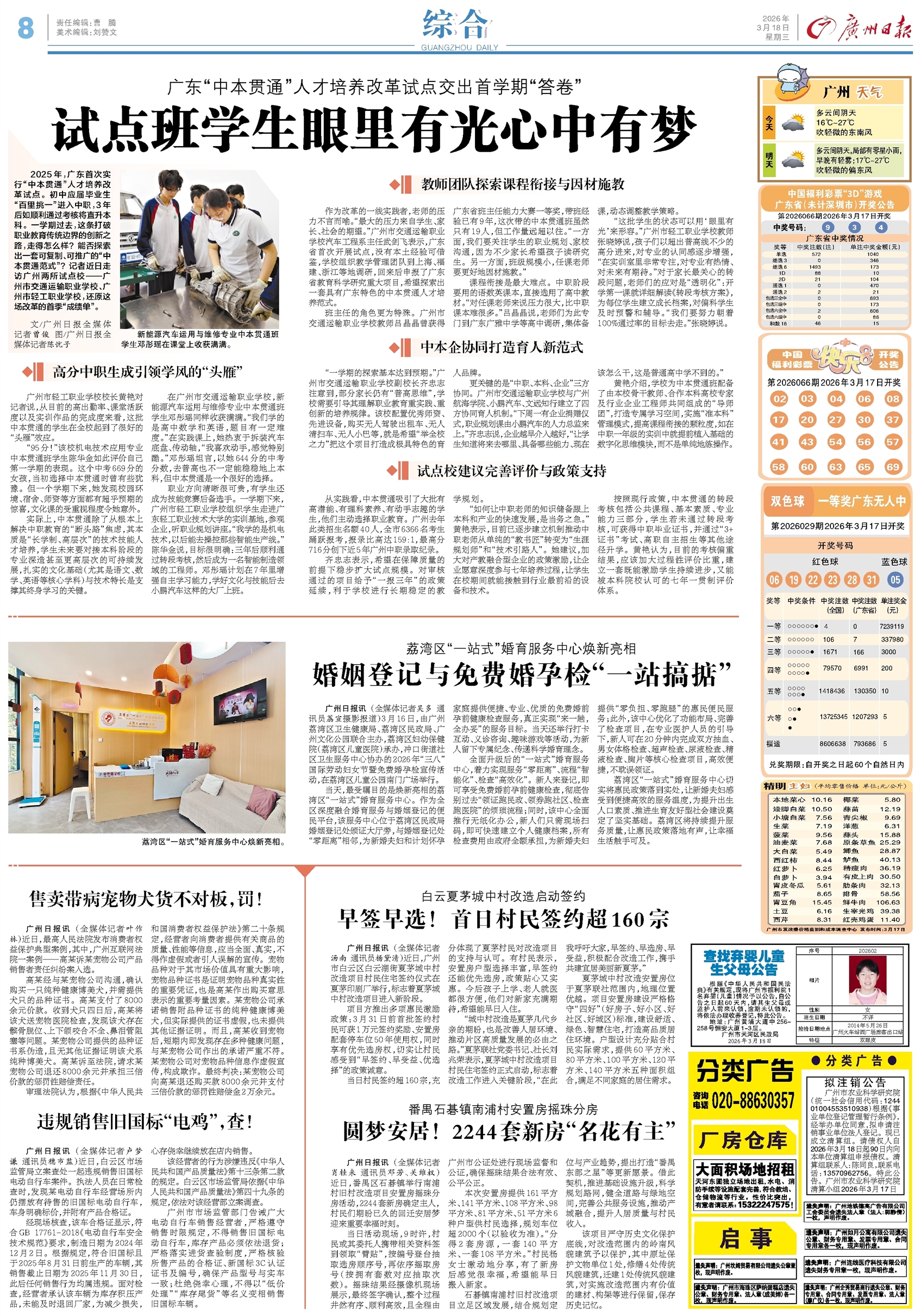 - 试点班学生眼里有光心中有梦 2025年,广东首次实行“中本贯通”人才培养改革试点。初中应届毕业生“百里挑一”进入中职,3年后如顺利通过考核将直升本科。一学期过去,这条打破职业教育传统边界的创新之路,走得怎么样?能否探索出一