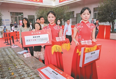 活动现场,村民不仅领到奖金,还领取了大米、食用油、鸡蛋等礼品。“我们都支持改造,希望能住更好的屋,过更好的生活,也希望以后村集体能帮我们赚更多的钱,让大家的生活越来越好。”萧岗村十社村民代表谢女士说,“我们现在对2028年充满期待,希望顺利收楼,也希望自己能带动身边的人,早日签约。”