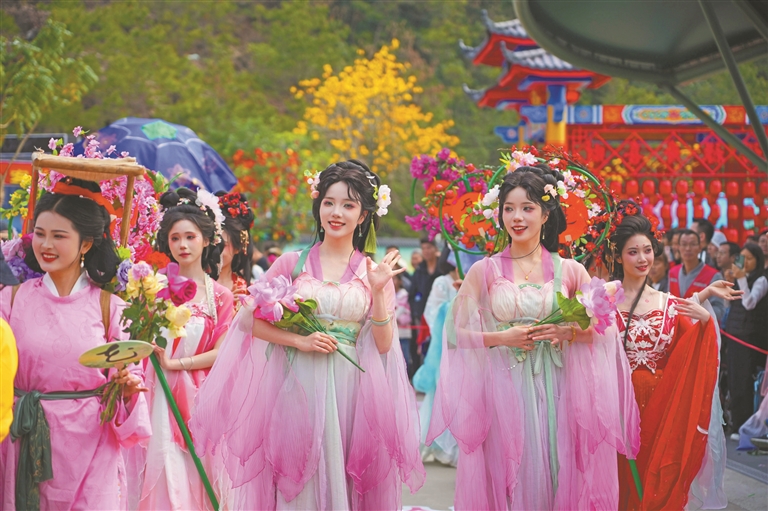 活动期间,景区围绕花神文化打造六大主题游园互动,涵盖“桃花缘”“山茶雅韵”“蓉华富贵”“心似莲花开”“水仙花神”“石榴花神”,并将邀请百万级网红KOL担任主花神,每逢周末在园区展演。