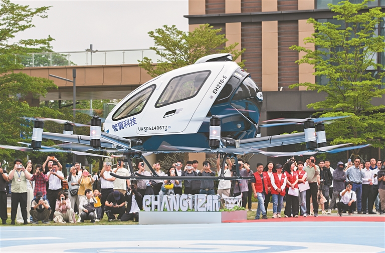 广东智翼科技发展有限公司董事长唐朝章介绍,EH216-S低空TAXI获民航局适航认证,配备16个机翼,即便出现多架机翼故障,仍可安全飞行并自动返航,待实现规模化商业服务后,将成为地面交通的重要补充,助力构建空地一体出行新场景,未来有望在白云湖打“飞的”。
