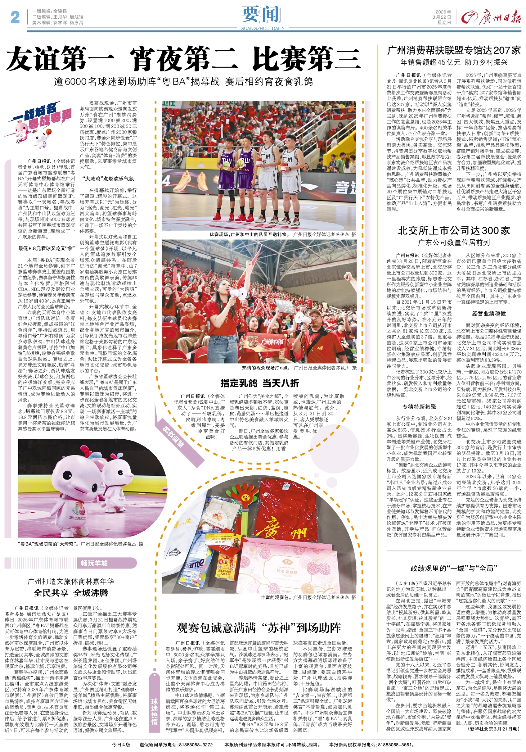 - 全民共享 全城沸腾 广州日报讯 (全媒体记者莫斯其格 通讯员穗文广旅宣)昨日,2026年广东体育城市联赛(广州赛区)“粤BA”揭幕战在天河体育中心体育馆打响,为进一步激活体育文旅消费、推动文旅体商林深度融合,广州市以