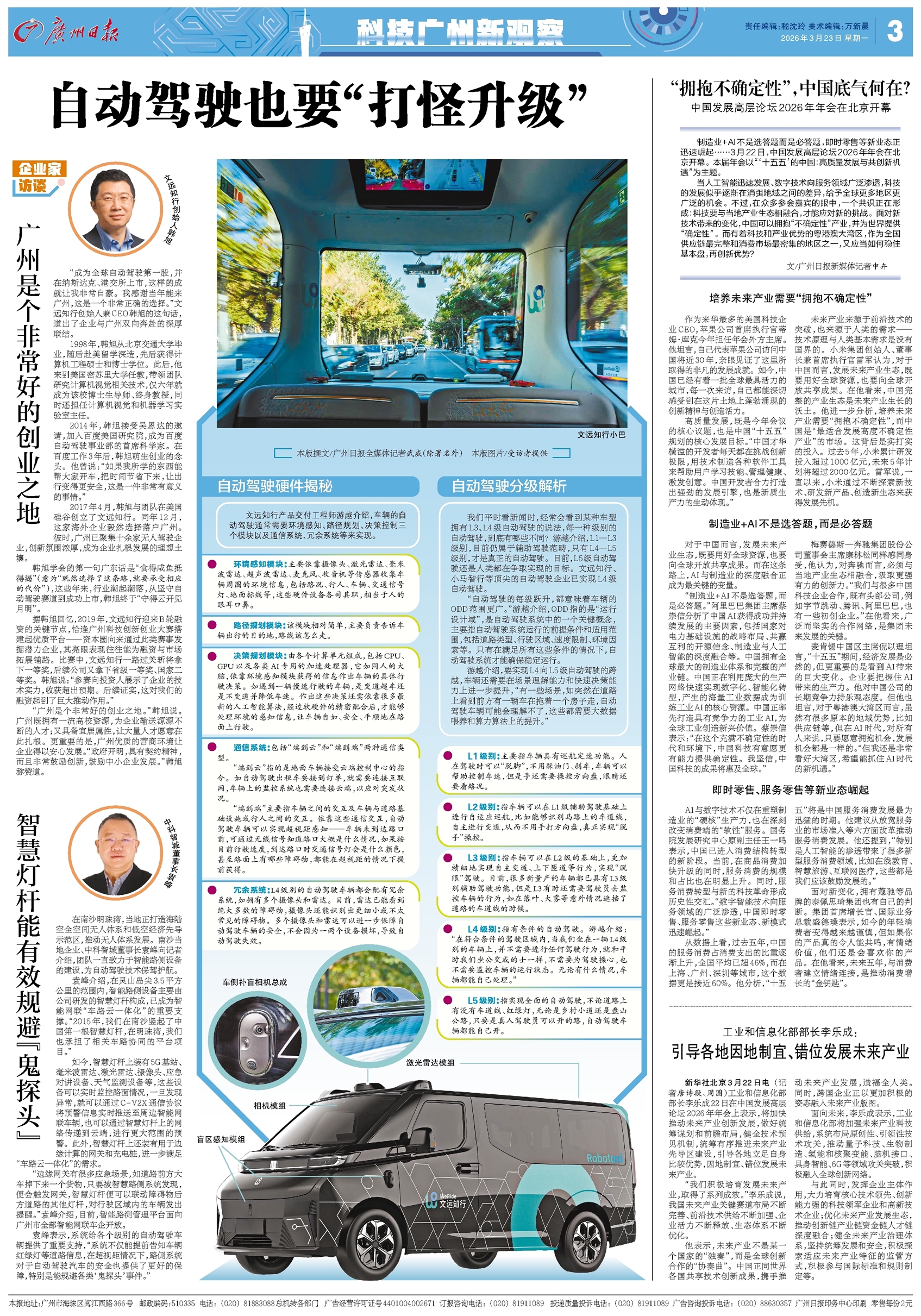 - 自动驾驶也要“打怪升级” 本版撰文/广州日报全媒体记者武威(除署名外) 本版图片/受访者提供 企业家访谈 广州是个非常好的创业之地 “成为全球自动驾驶第一股,并在纳斯达克、港交所上市,这样的成就让我非常