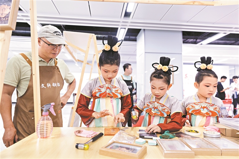 非遗铜拓体验让孩子们感受到传统文化的独特魅力。广州日报全媒体记者苏俊杰、邱伟荣 摄