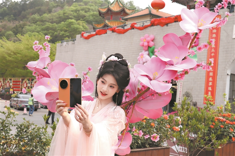 活在花花世界,求福气、要平安,再来一部好手机就更妙了,东莞观音山花朝节能满足你!3月22日,第五届东莞观音山花朝节浪漫开幕,花神妆造的古装丽人与游客共庆百花生日,OPPO携新款折叠手机Find N6惊艳亮相,平安银行东莞分行以福利好礼回馈市民,共塑一场人气鼎沸的春日雅集。