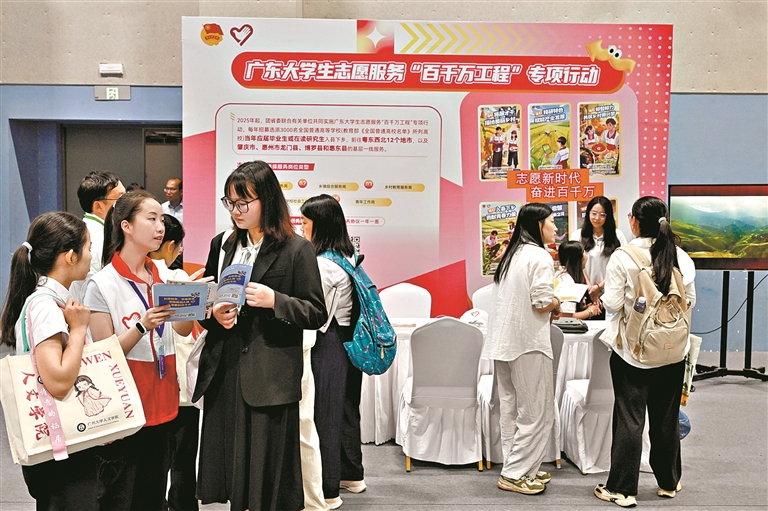 现场专门开设志愿服务“百千万工程”行动招募专区,面向高校应届毕业生或在读研究生,聚焦乡村教育、基层治理、农业科技、产业文旅等领域,计划招募3000名青年志愿者投身粤东粤西粤北地区12个地市及肇庆市、惠州市博罗县、惠东县、龙门县基层一线,为“百千万工程”贡献青春力量。