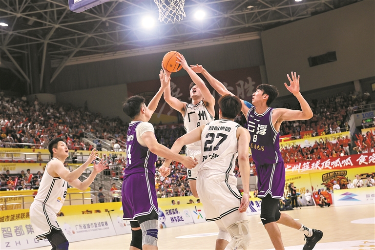 就在现场观众认为比赛几无悬念时,云浮队靠着核心队员李国庆开始追分。关键时刻,广州队30号球员李俊波稳住局面,他先是接邓其璟的助攻,投中一个三分球,让广州队重新以63比55取得领先;不到1分钟,他又抓住反击机会,快速切入篮下完成上篮,将分差扩大到10分,这也点燃了全场球迷的热情。