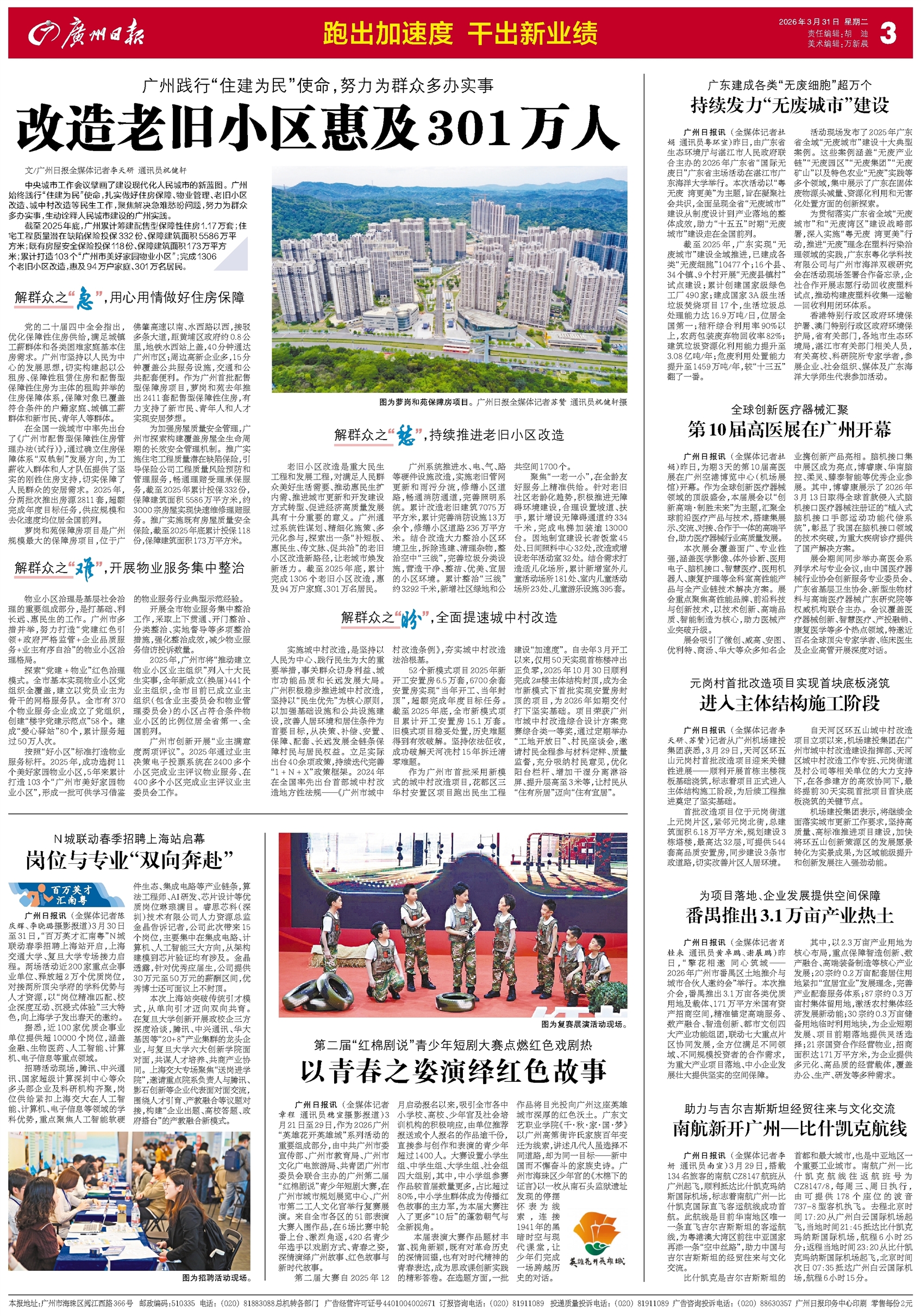 - 改造老旧小区惠及301万人 文/广州日报全媒体记者李天研 通讯员祝健轩 中央城市工作会议擘画了建设现代化人民城市的新蓝图。广州始终践行“住建为民”使命,扎实做好住房保障、物业管理、老旧小区改造、城中村改造等民生工作,