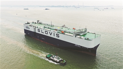 全球在建的首艘万车级汽车运输船昨出海试航