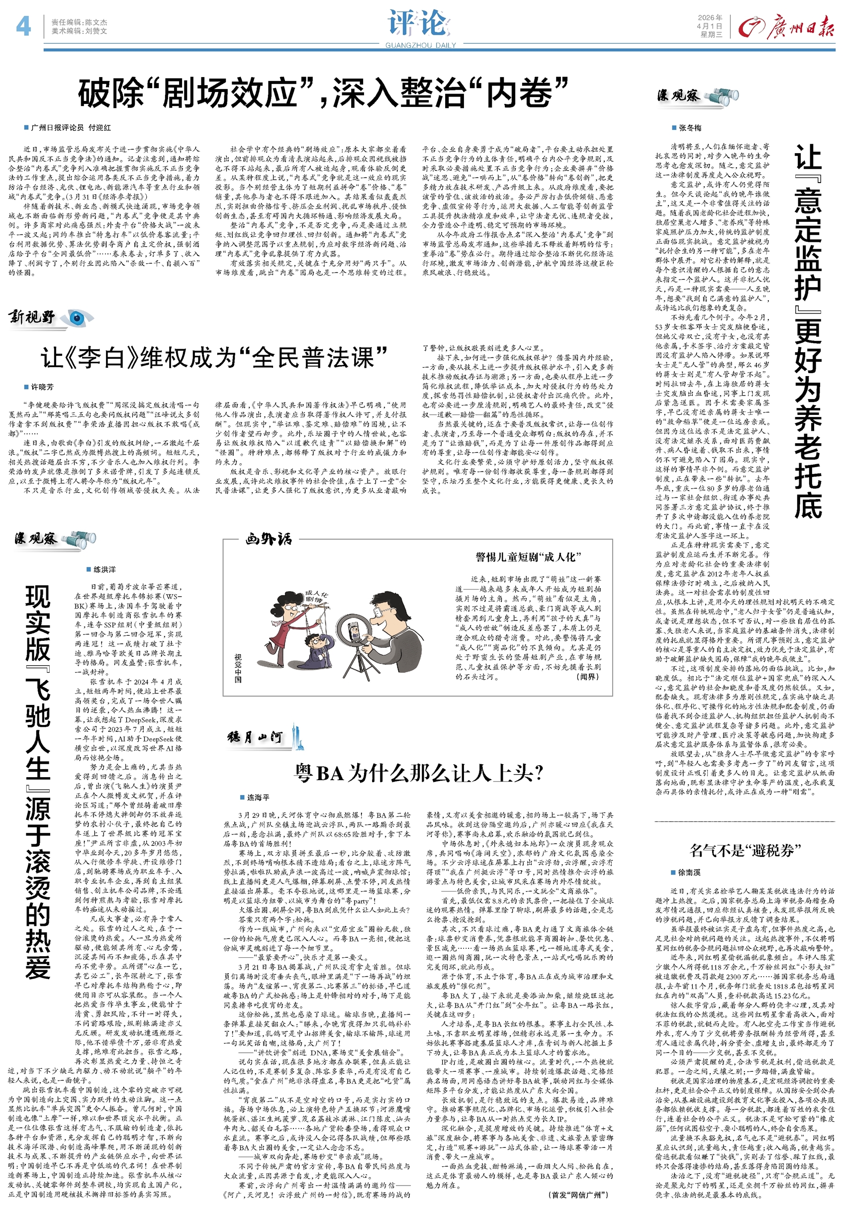 - 破除“剧场效应”,深入整治“内卷” 广州日报评论员 付迎红 近日,市场监管总局发布关于进一步贯彻实施《中华人民共和国反不正当竞争法》的通知。记者注意到,通知将综合整治“内卷式”竞争列入准确把握贯彻实施反不正当竞争法的工作重点,提