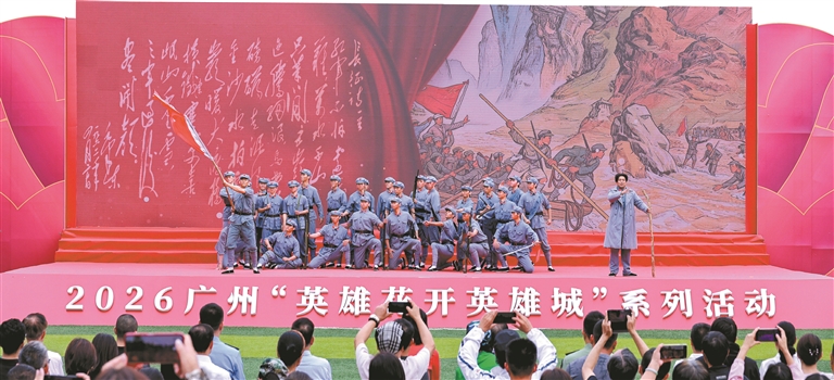 三载蓄力再出发,英雄城内谱新篇。今年3月1日,2026广州“英雄花开英雄城”系列活动在红色殿堂农讲所纪念馆拉开序幕,宣告新一年红色文化主题活动正式铺开;3月29日,系列活动收官重头戏在广州市国防教育中心燃情上演,将全城红色热潮推向新高潮。在这个木棉盛开的火红三月,34个核心场馆带动点亮全城,千余场重点活动精彩纷呈,线上线下逾3亿人次参与互动,这场生动传播红色文化的盛事点燃了羊城的春天,推动着红色文化在新时代绽放出更加绚丽的光彩。