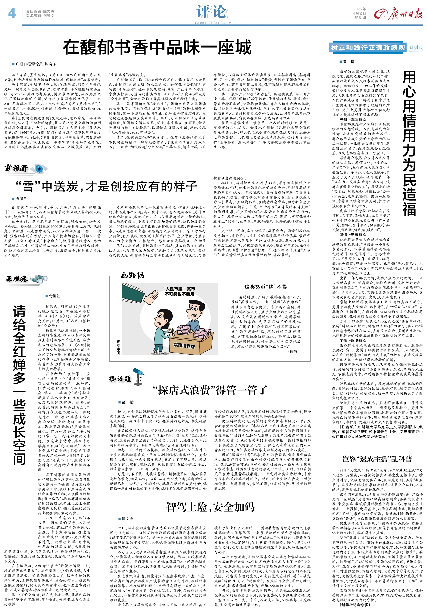 - 在馥郁书香中品味一座城 广州日报评论员 许晓芳 四月羊城,墨香悠远。4月1日,2026广州读书月正式启幕,近千场阅读重点活动将在这座“阅读之城”次第铺开。 历史沉淀,是城市书香之源;发展所需,则为广州传承文脉。“