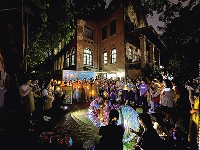 王意迦:本次展览也是“中山大学313艺术家驻访计划”的呈现内容。该计划邀请艺术家进驻校园,在历史建筑高礼士屋中开展创作与交流,推动艺术与学术、心理健康的跨领域对话。此次驻访聚焦特殊群体与艺术疗育,以驻留创作的方式,让艺术进入校园、进入生活。从现场演出我们就可以看到,这些特殊孩子的多样性和可能性,他们远远超乎我们的想象和认知,在排练时我们就碰撞出了很多火花。我们通过舞台和情景的演出,让特殊孩子通过舞蹈动作、即兴音乐、戏剧等形式去表达自己,这跟“对画”是异曲同工的。