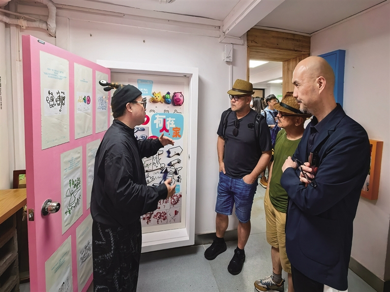 周鲒:本次展览由中山大学心理健康教育咨询中心、中山大学中国文化与心理研究中心、广东省青少年心理健康与心态发展重点实验室联合主办,是专业心理机构与艺术公益机构的一次合作,试图呈现一种丰富的“心理生态”——不是把“问题”当作问题,而是把每一个人的内心世界,当作值得进入的风景。广东省廖冰兄人文艺术基金会多年关注特殊群体,源于漫画家廖冰兄留下的艺术精神:艺术与社会的关系,是一种责任感。廖冰兄的漫画幽默、锋利、尖锐,他画的东西一开始也被人说“这也能叫画”。但正是这种“不怕奇怪”的精神,让基金会持续支持这类项目近二十年。