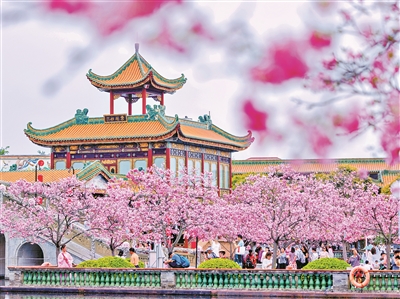 余荫山房朱顶红精品展如期开展,花姿雅致、寓意吉祥,吸引众多市民游客驻足观赏。黄埔区在香雪公园、创新公园等地举办第四届青梅共享活动,市民游客踏青赏梅、领取鲜梅,沉浸式感受百年“香雪”文化。香蜜山生态果庄千亩稔花绽放成粉色花海,游客参与亲子采摘、古法造纸、植物拓印,体验“稔花祭春”传统习俗。