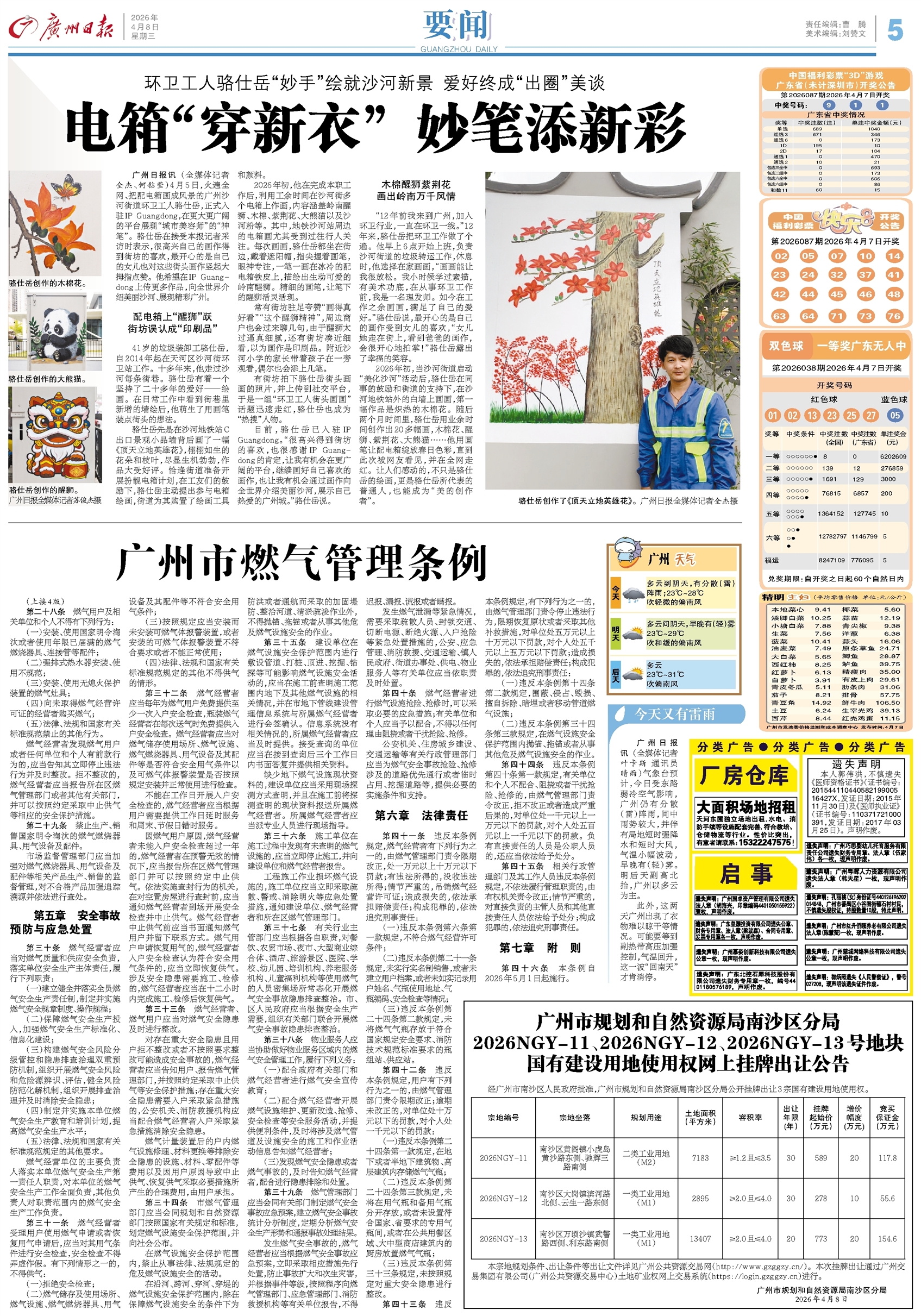 - 电箱“穿新衣” 妙笔添新彩 广州日报讯 (全媒体记者全杰、何钻莹)4月5日,火遍全网、把配电箱画成风景的广州沙河街道环卫工人骆仕岳,正式入驻IP Guangdong,在更大更广阔的平台展现“城市美容师”的“神笔”。骆仕岳在