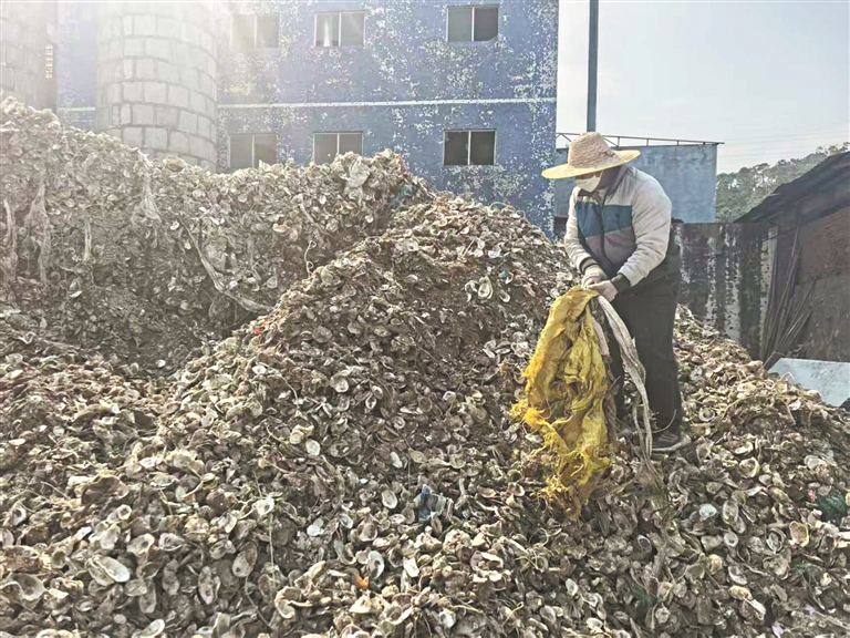 “一方面,露天堆放的蚝壳遇雨发酵,散发恶臭、滋生蚊虫病菌,污染人居环境与土壤地下水;另一方面,倾倒近海的蚝壳长期淤积,堵塞近海航道与滩涂孔隙,破坏红树林根系生长环境,导致台山镇海湾等传统蚝养水域局部生态退化,水体自净能力下降,影响浮游生物与底栖生物栖息繁衍。此外,大量蚝壳简易填埋还占用宝贵土地资源,难以自然降解,形成长期生态遗留问题。”卢子策说。