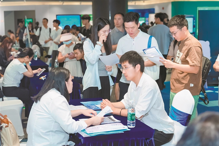 招聘会吸引省内外高校的1400余名青年人才入场,其中硕博人才占比超90%。现场有610余人次初步达成就业意向。