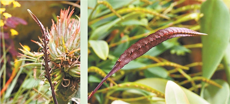 另一种中眼镜蛇石豆兰假鳞茎近球形,大小适中,花梗长度可达50至100厘米。它的花序相对柔美内敛、灵动飘逸,少了几分凌厉,多了些许雅致,蛇形花序曲线流畅,尽显兰科植物的精巧之美,兼具拟态与美感。