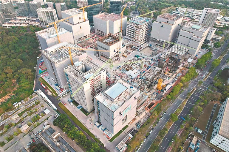 园区选址在前沿科技创新产业园,位于黄埔科学城核心片区,区位优势得天独厚,总用地面积12.8万平方米,建筑面积44.75万平方米,高标准规划建设4栋研发厂房、4栋高标准厂房,配套1栋总部办公楼和1栋拥有416套房源的17层人才公寓,可容纳从业人员约2万人。同时,路演发布空间、员工食堂、运动场等功能空间一应俱全,万达广场、宝能国际体育演艺中心等商业文体配套环伺,中山大学附属第三医院岭南医院等优质医疗资源近在咫尺,距离地铁6号线、7号线萝岗站仅100米,1.5小时内可通达湾区各大主要城市,全面契合科创企业“研发+生产+办公+生活”的全链条发展需求。