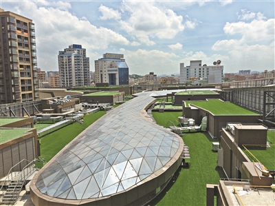 在寸土寸金的广州,楼顶绿化也可以成为草坪经济的新发力点,许多商业综合体或住宅的楼顶,通过铺设人造草坪摇身变为休闲空间。草坪经济也正从传统草坪迈向立体空间。