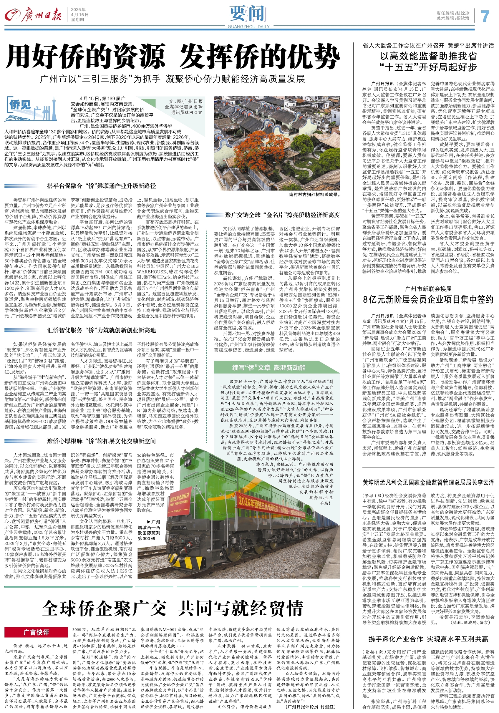 - 用好侨的资源 发挥侨的优势 侨见广州 4月15日,第139届广交会如约而至,展馆内万商云集,“全球侨企聚广交”!对回家参展的侨商们来说,广交会不仅是洽谈订单的商贸平台,更是连接故土与世界的乡情纽带。 广州,是全国重要