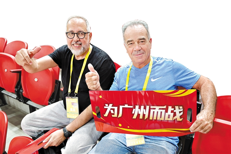 “我们很期待晚上的比赛!”昨晚,广州队与肇庆队对阵的粤BA在天河体育中心热血“开战”。来自阿根廷的客商Gerardo Rossi与朋友从广交会的展馆来到赛场外,参观完赛场外的广州“必购必带”城市礼物展示专区后,便入场观看接下来的粤BA比赛。