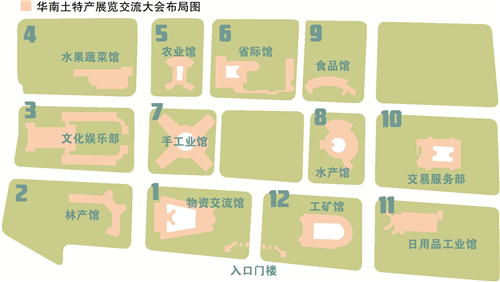 展馆设置亦体现出全国性与外贸导向。十个展馆包括物资交流、工矿、日用品工业、水产、食品、省际、农业、水果蔬菜、手工业、林产等。其中,物资交流馆设有“对外贸易部门”展区。《华南土特产展览交流大会参观手册》记载,该展区通过电动旋转大亭展示“先进后出不落空,主要物资不放盘,通过银行有保证,集中交易最公平”等政策方针,并陈列标准出口商品及检验手续;两幅大型半立体图表标明华南主要出口土特产及其输出地、主要输入品及其来源地。省际馆则汇集华北、东北、西北、华中、西南、中南六大政区特产,突破“华南”地域界限,呈现全国范围的商品流通格局。
