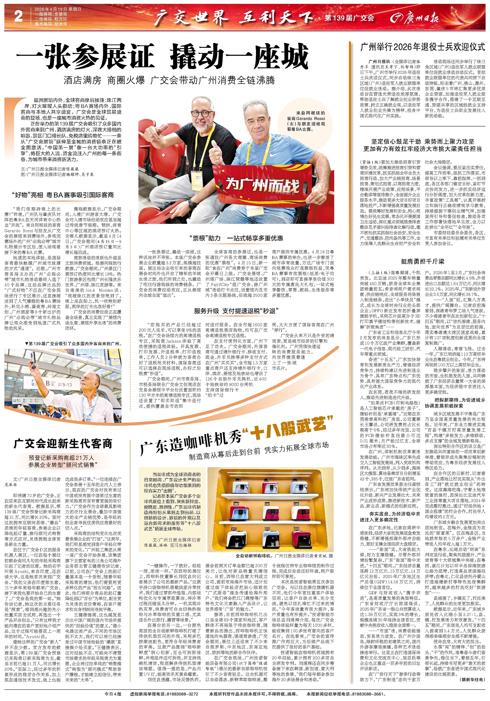 - 一张参展证 撬动一座城 琶洲展馆内外,全球客商摩肩接踵;珠江两岸,灯火璀璨人头攒动;粤BA赛场内外,国际客商与本地人共享盛宴。广交会是全球贸易盛会的登场,也是一座城市消费火热的见证。 正在举办的第139届广交会吸