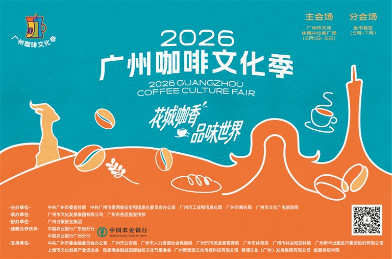 花城咖香、品味世界。初夏风至,中轴启新章。今年五一假期,天河体育中心将弥漫起环球咖啡香气,2026广州咖啡文化季将开启,诚邀热爱咖啡的你,前来探索风味、共叙灵感。