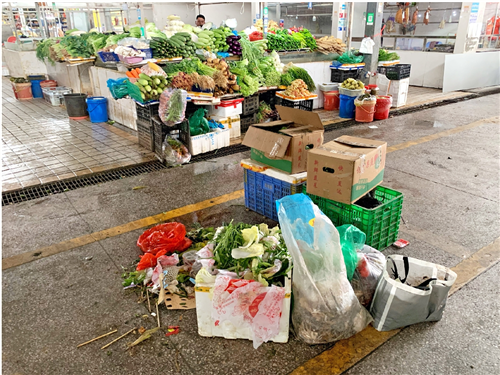 记者上周走访看到,市场环境确实存在脏乱现象。部分摊档未落实“门前三包”责任制,档口内外地面都堆积着垃圾。市场内的通道有多处杂物堆积,部分摊档随意丢弃垃圾,导致滋生苍蝇、蚊子等飞虫。