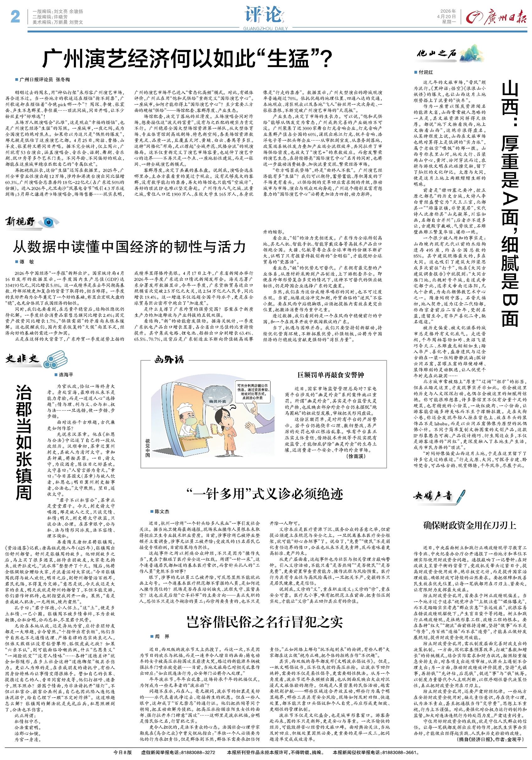 - 广州演艺经济何以如此“生猛”? 广州日报评论员 张冬梅 刚刚过去的周末,用“神仙打架”来形容广州演艺市场,再合适不过。当一些地方的歌迷还在烦恼“抢不到票”,广州歌迷却在烦恼着“今晚pick哪一个”?周深、李健、张震岳、声生不