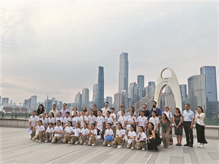 广州日报讯 (全媒体记者吴荻 实习生王俞喻摄影报道)4月21日下午,广报中心广州阳台迎来一场别致的合唱展示与交流互动活动。海珠区少年宫及相关学校学生代表与苏格兰皇家音乐学院合唱团齐聚现场,同台互动、放声歌唱。本次活动是“全球青年看广州”主题活动的组成部分,活动以歌声搭建起中外文化交流纽带,尽显大湾区青少年青春朝气,也让中外青年在音乐共鸣中增进了解、拉近情谊。