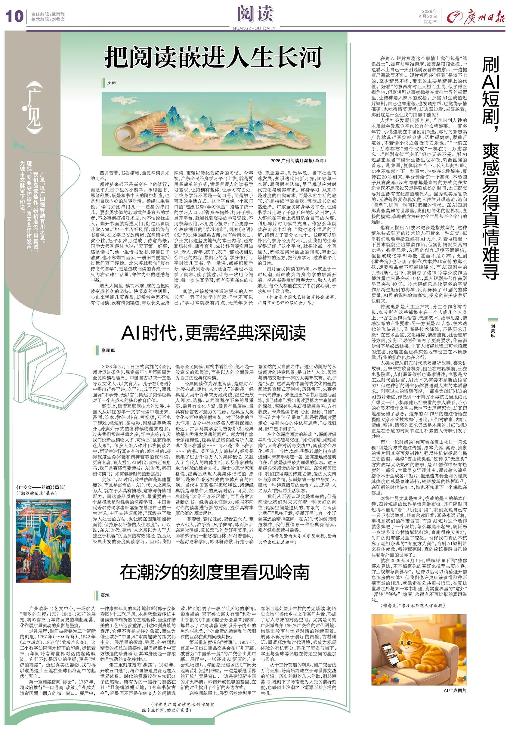 - AI时代,更需经典深阅读 2026年2月1日正式实施的《全民阅读促进条例》,规定每年4月第四周为全民阅读活动周。中国自古以来一直倡导以文化人、以文育人。孔子在《论语》中提出:“兴于诗,立于礼,成于乐”,而且强调“不学诗,无