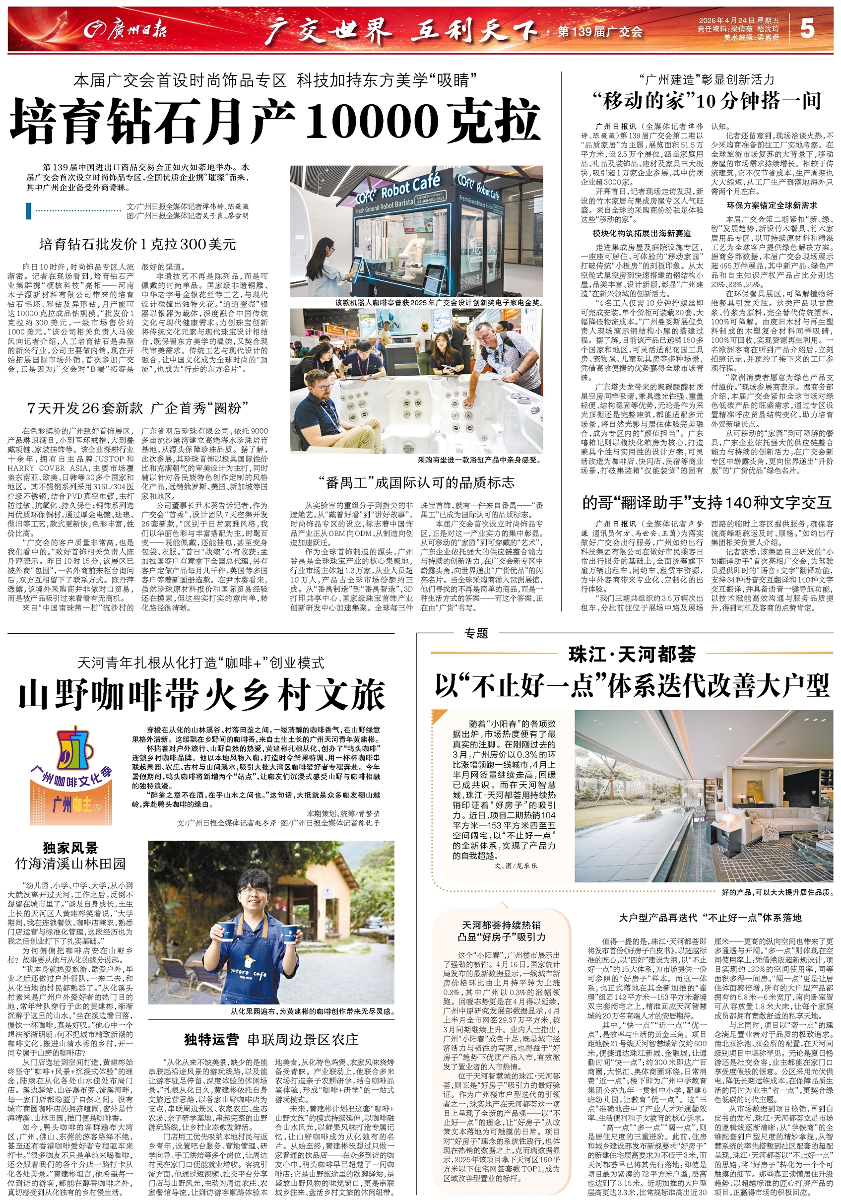- 培育钻石月产10000克拉 第139届中国进出口商品交易会正如火如荼地举办。本届广交会首次设立时尚饰品专区,全国优质企业携“璀璨”而来,其中广州企业备受外商青睐。 文/广州日报全媒体记者谭伟婷、陈薇薇 图/广州日报全
