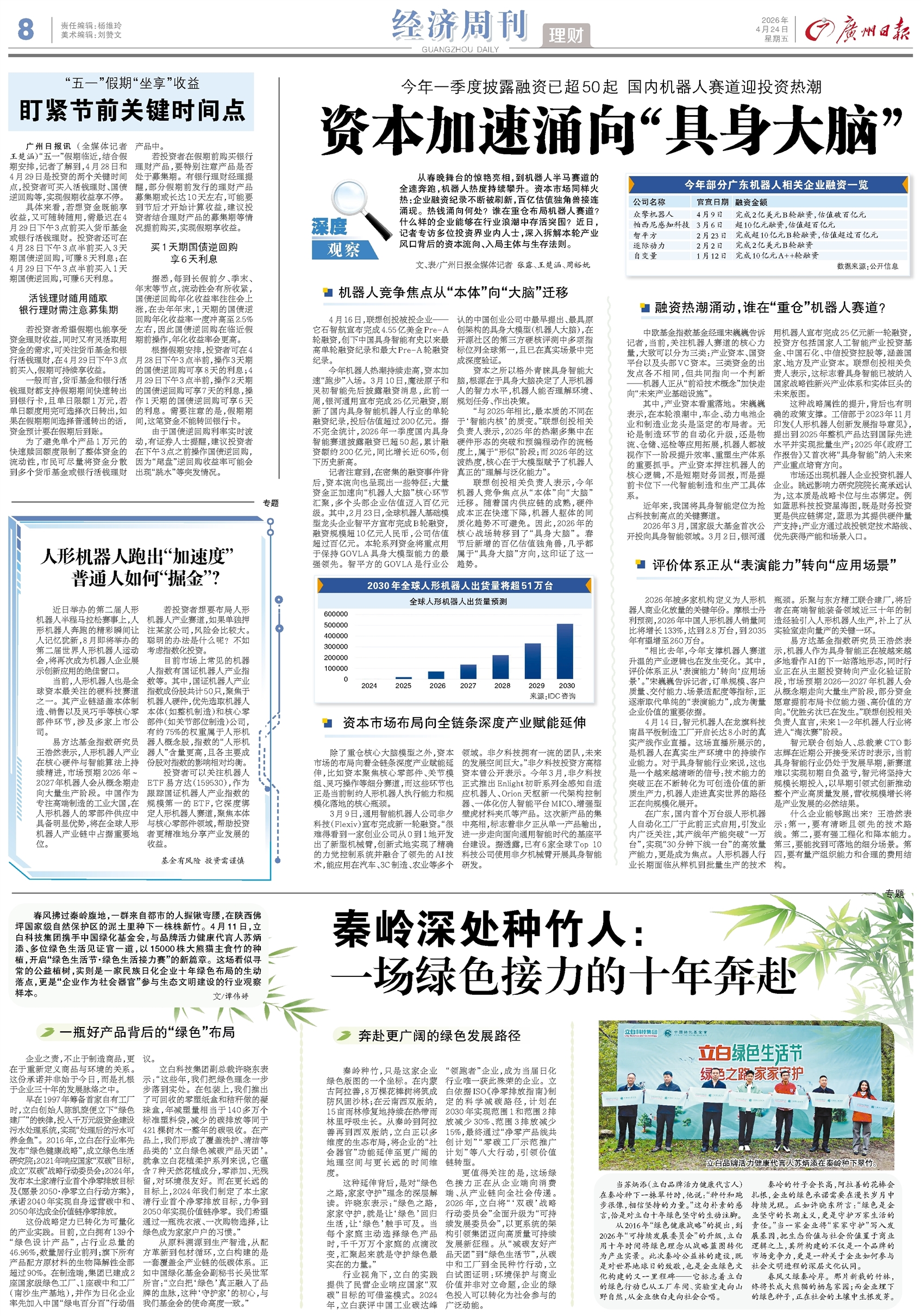 - 资本加速涌向“具身大脑” 深度观察 从春晚舞台的惊艳亮相,到机器人半马赛道的全速奔跑,机器人热度持续攀升。资本市场同样火热:企业融资纪录不断被刷新,百亿估值独角兽接连涌现。热钱涌向何处?谁在重仓布局机器人赛道?什么