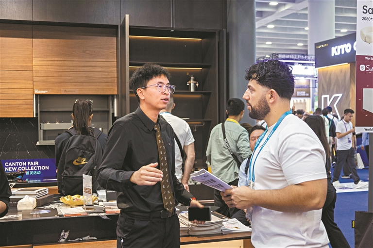 4月25日,第139届广交会第二期第三天,展馆现场氛围依然热烈。本期聚焦“品质家居”主题,参展企业超1万家。记者走访发现,展馆内,不同肤色的采购商拖着行李箱穿梭于展位之间,时而俯身端详产品细节,时而与参展商交谈问价,各种语言的交谈声此起彼伏。