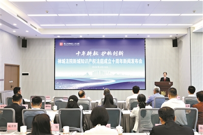 4月24日,在第26个世界知识产权日来临之际,禅城法院知产法庭召开新闻发布会,发布知识产权审判白皮书,晒出十年审判工作“成绩单”。十年来,禅城法院知产法庭共受理各类案件88074件,审结86636件。从条块审判到民事、行政、刑事一体保护,从酌定赔偿到精细计量,从坐堂问案到产业护航,从案件办理到社会治理,禅城法院知产法庭用十年时间,完成了一场从“个案裁判”到“系统治理”的静水流深的变革。禅城法院知产法庭正以知识产权全链条保护激活创新动能、赋能产业发展,为禅城“二次创业、全域向新”筑牢坚实的法治底座。