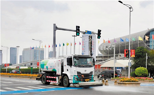 “在展会开幕前,我们采用人机协同保洁方式,对辖区内主次干道、人行道、交通护栏等进行全方位清洗和深度保洁,营造干净整洁的城区环境。展会期间,全面加强区域内大型酒店及展馆周边巡回保洁工作,以‘绣花功夫’提升城市环境卫生。”广州市海珠区城管部门相关负责人介绍,海珠城管还联合琶洲街道、展馆物业管理单位,建立了“巡查发现—沟通反馈—响应处置”高效闭环机制。
